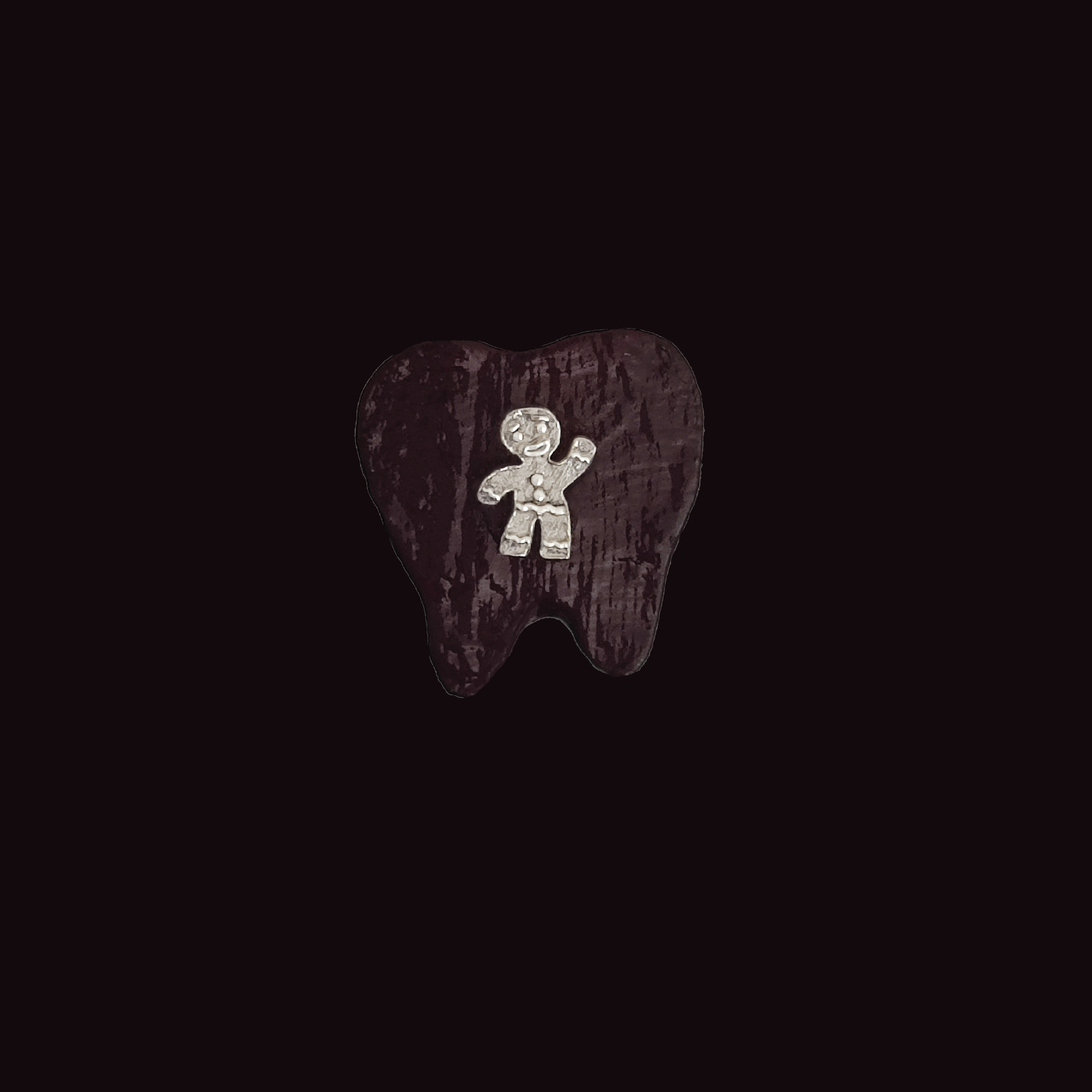 Tooth jewelry in solid 1000 Silver and 18k Gold. We don’t work with other types of alloys or veneers.