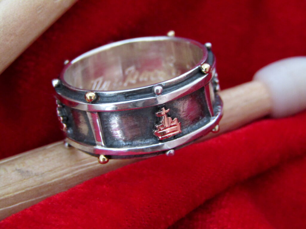 Encargado para un cumple 40 . El anillo remite al ocio del cumpleañero y las pequeñas coronas remiten a la banda de la que forma parte: Dios Salve a la Reina.