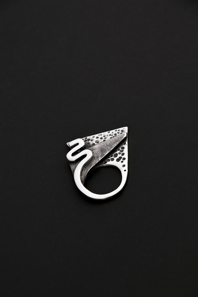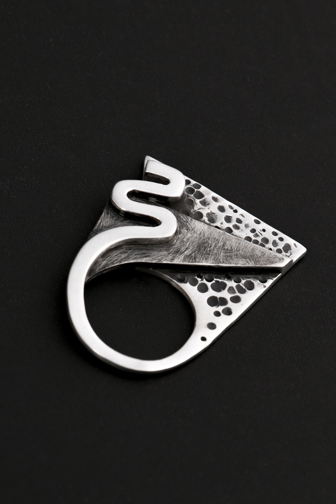 Anillo con diferentes texturas y grabados hecho a mano en Plata 925.