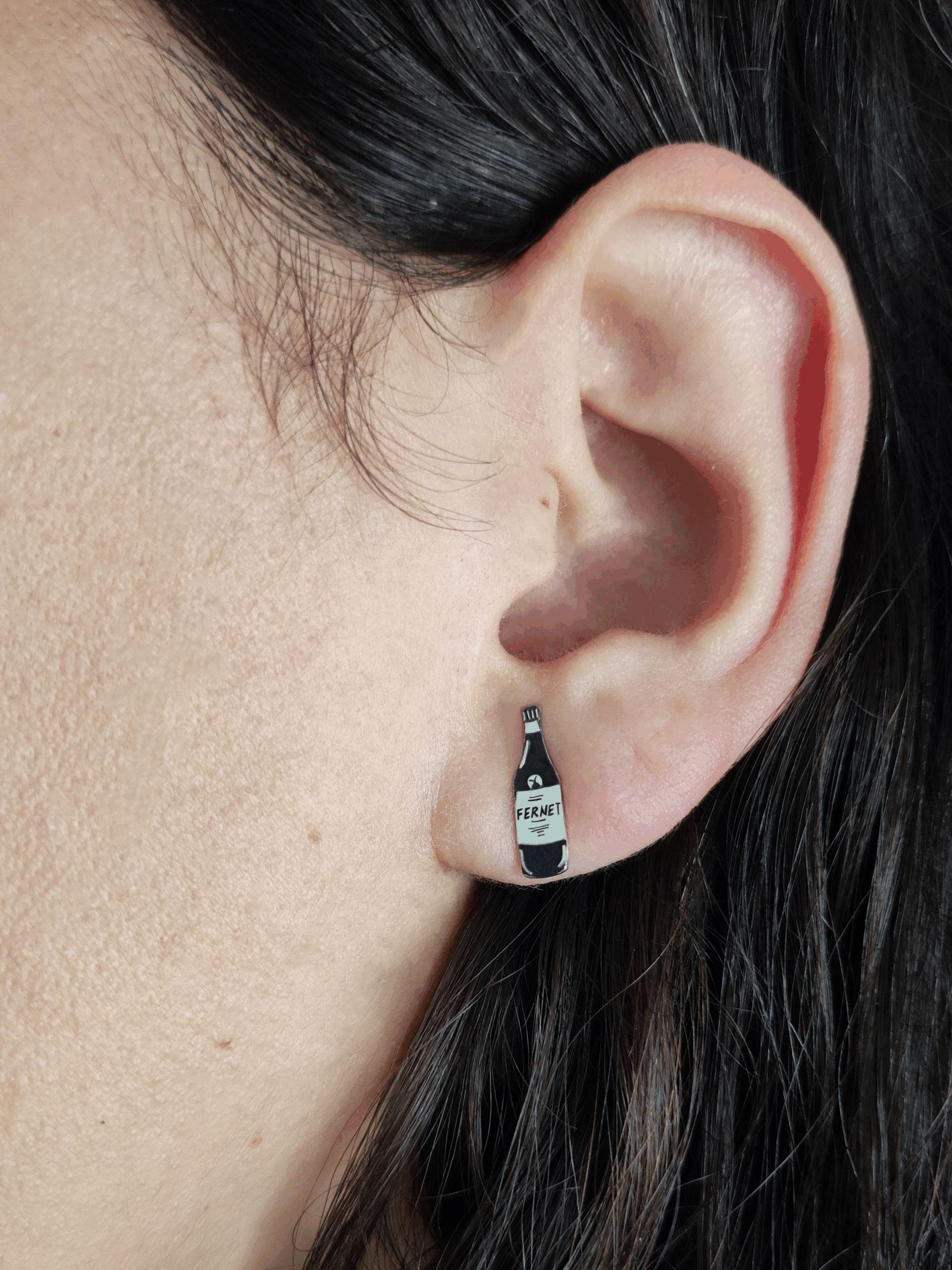 El par está compuesto por un Fernet y una Coca Cola. Podés usar uno en cada oreja o, si tenés varios agujeritos, llevar los dos en la misma. ¡Como más te guste!