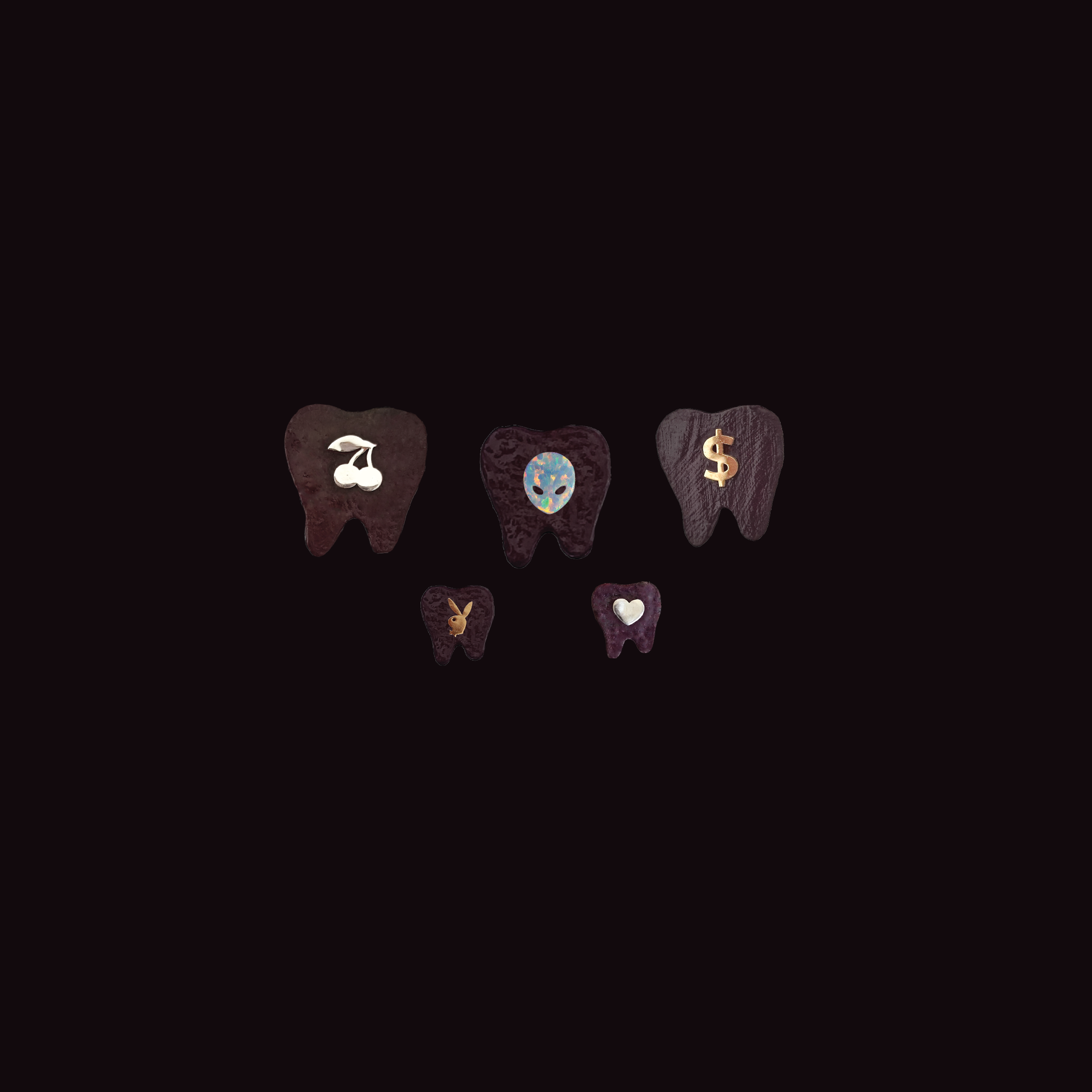 - Oro 18k: Incluye 1 Playboy en Oro 18k, 1 Corazón Contorno en Oro 18k y 1 Destello Macizo Mini en Oro 18k.